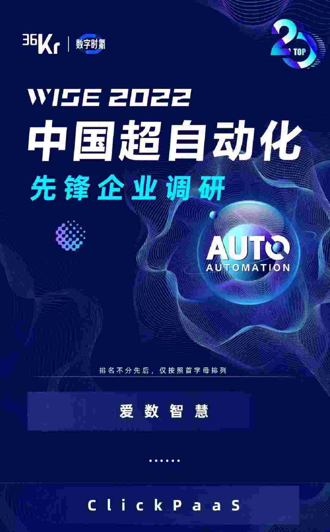 8月10日,,,,由36Kr主办的WISE 2022中国超自动化峰会在杭州成功举办。。。NO钱包作为国内低代码PaaS平台的领军企业,,凭借过硬的技术实力和优质的产品能力,,,,在本次峰会中实力入选「2022年中国超自动化先锋企业」20强。。。。