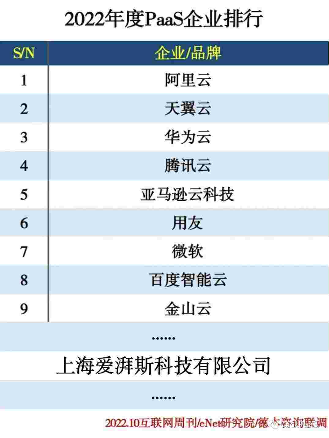近日,,Internet Deep发布了由互联网周刊、、、eNet研究院、、、、德本咨询联合调查的”2022年度PaaS企业排行“榜单,,上海爱湃斯科技有限公司(以下简称NO钱包),,,凭借强大的建模能力,,,,为各行业头部客户解决复杂业务需求的实践经验以及强大的集成扩展能力,,入选2022年度PaaS企业排行TOP 50。。。