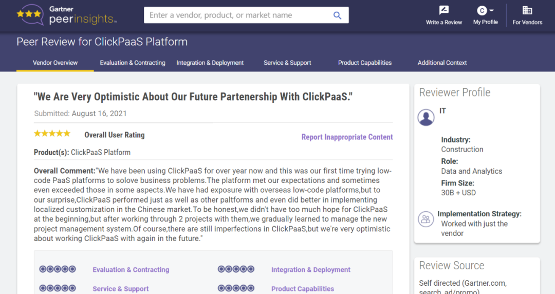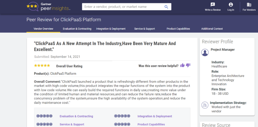 Tips::【Peer Insights】——用户对企业IT产品和服务发布真实评价的平台。。。目前已有355个市场,,,,255,000条经过验证的评价。。。。每一条评价Gartner会针对参评企业营收规模及参评人员信息做验证、、、评价内容做多维核实。。。。